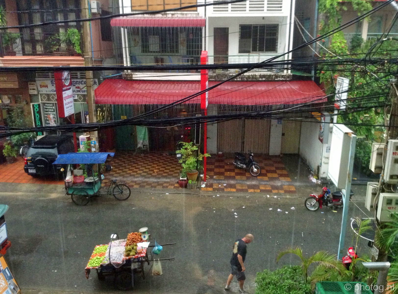 De oplettende kijker ziet dat mijn uitzicht ongeveer hetzelfde is als de vorige keer, al zit ik nu een verdieping lager. Vandaag zag ik op de facebookpagina van RoCK (Rainbow Community Kampuchea) een aantal appartementen aangeboden voor meer dan de helft van de prijs die ik nu betaal, met zwembad(je) erbij. Daar ga ik vanavond eens een kijkje nemen. Dat scheelt weer wat gedoe om bij een hotel te gaan zwemmen. En een best wat geld ook.