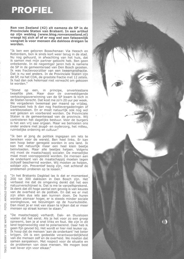 De Zelfkrant (blad voor en door dak- en thuislozen) plaatste een interview met mij.