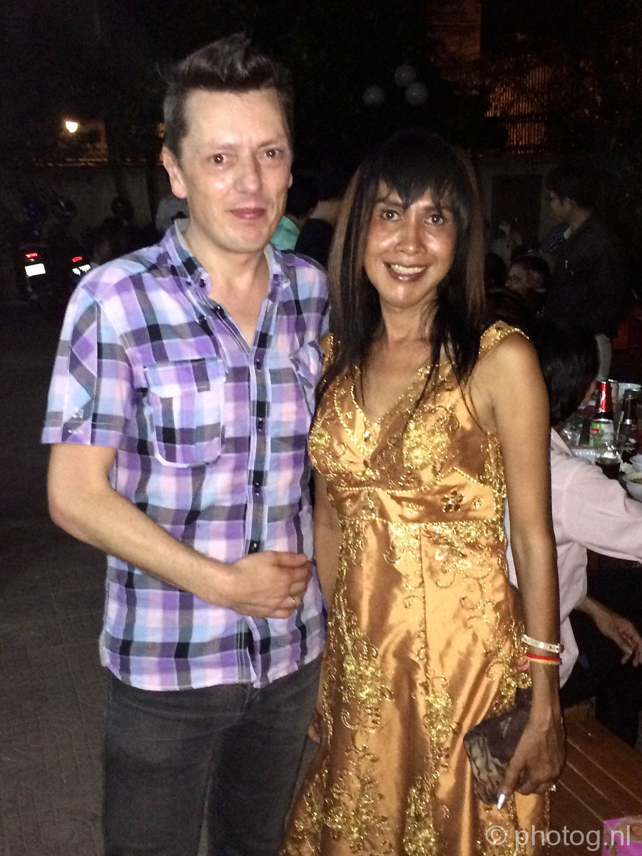 Enfin, hieronder de foto’s. Leaksmy straalde als nooit tevoren, ze had wat aan heur haar gedaan en dat maakte een enorm verschil. De jurk deed de rest. En ze was niet de enige met schmink op, ook voor Vireak was het feestje aanleiding om zich op te maken, zij het wat subtieler:
