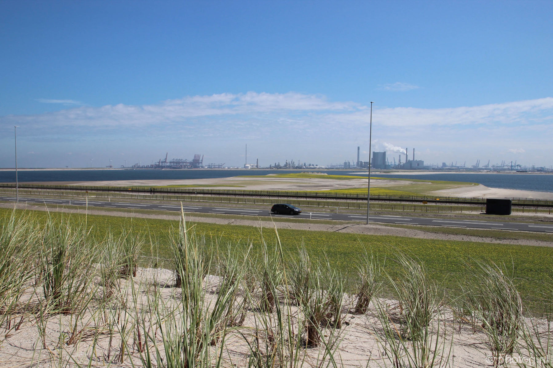 Mooi om de ontwikkeling van zee naar nieuw land te zien. En tussen alle havenactiviteiten en industrie weet de natuur zich ook te handhaven, al is het op een klein snippertje kunstmatig aangelegd duin.