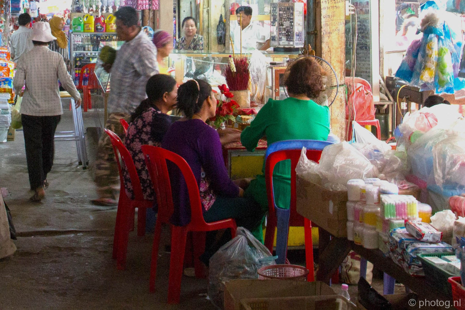 Men heeft het over de buitengebieden, maar op elke markt in Phnom Penh en in andere steden van betekenis vind je waarzegsters en kaartlezers. Hun diensten vinden gretig aftrek, zoals hierboven bij deze kaartlegster op een markt in Battambang.