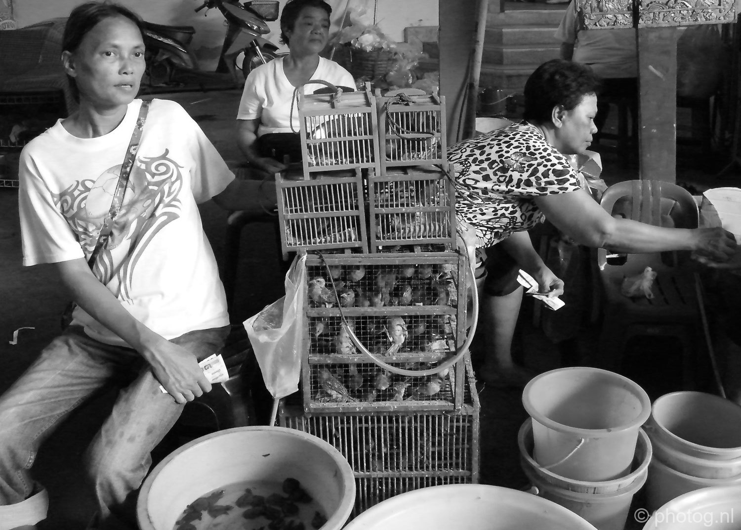Er werden vogeltjes te koop aangeboden die je dan naar Boeddhistisch gebruik kan vrijlaten. Bij wijze van goede daad. Maar daarvoor moesten die stakkertjes wel eerst gevangen worden. En ze zagen er niet echt fris uit.