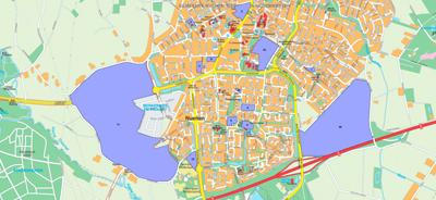 Nuenen is omgeven door de Ecologische Hoofdstructuur en er lopen twee beken langs de dorpen: de Kleine DOmmel en de Hooidonkse Beek. De paarse plekken op de kaart zijn de lokaties waar gebouwd is, of gaat worden. De grote plek links ligt dicht bij de Kleine Dommel.