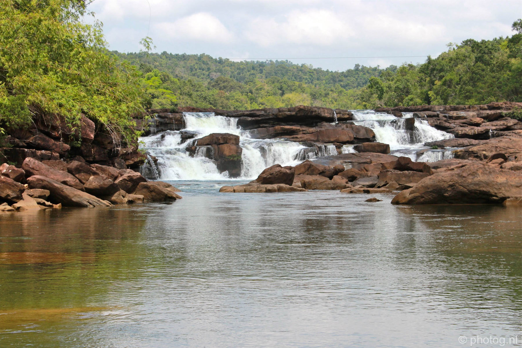 Na een flinke rit stapten we over in een boot die de rivier op voer richting ons doel: de watervallen van Tatai. Ik zei nog dat we er maar rekening mee moesten houden dat het een zielig stroompje zou zijn, aangezien het droge seizoen was begonnen, maar dat pessimisme bleek ongegrond.