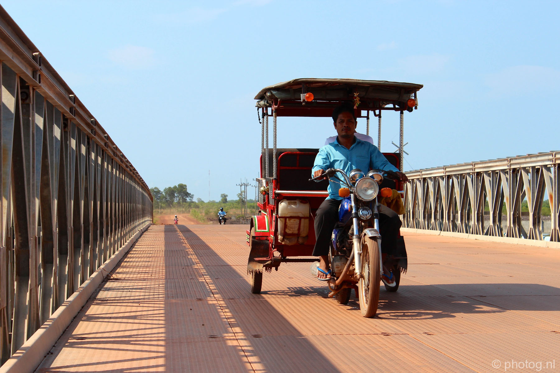 De tuktuk in Cambodja ziet er anders uit dan die in Thailand. Daar is het een driewieler brommobieltje met opengewerkt koetsje voor de passagiers. Even kitscherig als in Thailand, maar dan in de vorm van een aanhangkoetsje achter een brommer is de Cambodjaanse variant.