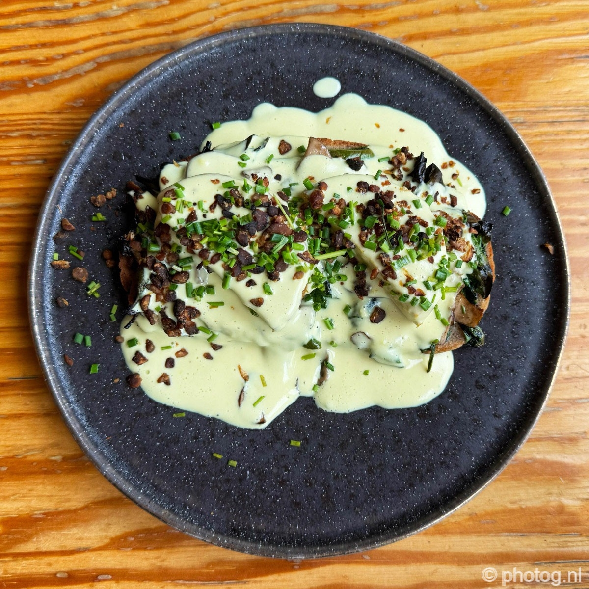 Geloof het of niet, maar ook Pequeno had een Egg Benedict (al vind ik het niet meer terug op het menu. We kwamen voor een koffie en een thee, maar dit kleine vegan kaasbolletje kon ik niet weerstaan. Er staan meer plantaardige op het menu, klein en aangenaam zaakje.