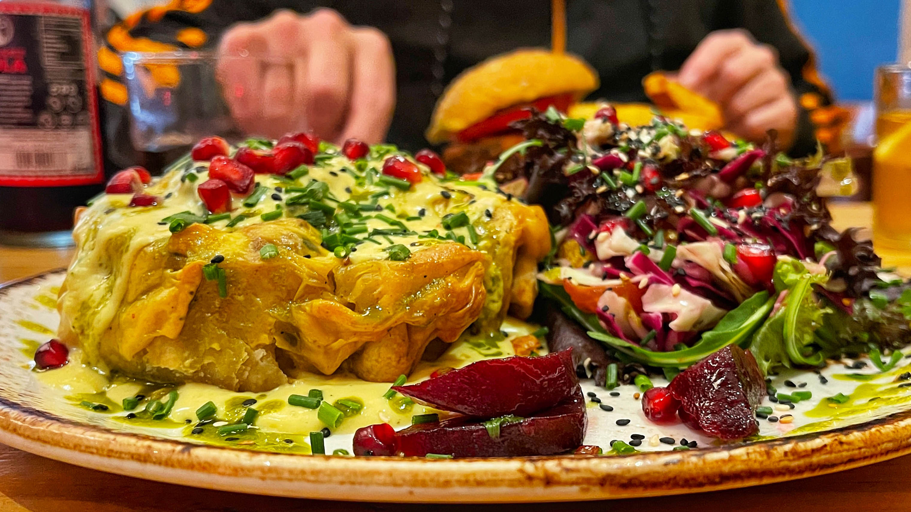 Een vegan zaak om de hoek had koffie, maar geen plantaardige melk. Wel liep de aardige jongeman met ons naar ’n vegan-vriendelijke lunchtent. Een overzicht.