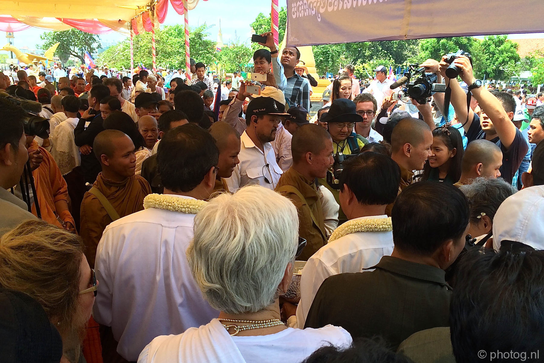 De hoofdwegen naar Wat Botumpark waren afgezet, maar dankzij de inefficiënte politie ben ik via een zijstraat toch op de plek van bestemming gekomen. Het was bloedheet, de soldaten van de militaire politie zaten te puffen in de schaduw van een boom en onder een tentdoek.
