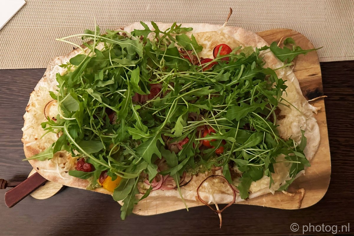 De beste vegan gerechten at ik in Bierosophie, de naam verraadt het al een beetje: (streek-)gerechten met bier in de hoofdrol. Ook hier veel plantaardige gerechten, en ook hier weer een Oostenrijks taaldingetje. Want wat men in Duitsland Flammkuchen noemt, heet hier Feuerfleck. Het smaakte even lekker. Voor de verandering erg vriendelijke Oostenrijkse bediening.